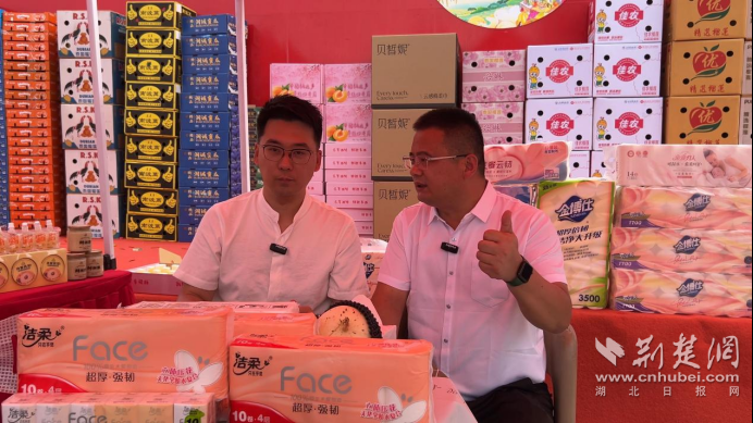 活動(dòng)現(xiàn)場,設(shè)置了農(nóng)特產(chǎn)品展示區(qū)和電商直播區(qū)。在直播區(qū),首衡集團(tuán)跟京東集團(tuán)合作設(shè)立的京東超市“家鄉(xiāng)好味”直播間開啟首場直播,直播達(dá)人向觀眾展示、介紹血桃、米酒、榴蓮等農(nóng)特產(chǎn)品,并送出福利好貨大禮包;孝感文旅達(dá)人還向大家推薦了孝感農(nóng)特產(chǎn)品、著名文旅景點(diǎn),宣傳孝文化。在農(nóng)特產(chǎn)品展示區(qū),首衡城商戶代表向線上線下觀眾介紹了無核荔枝、榴蓮、菠蘿蜜等首衡好物,吸引現(xiàn)場觀眾品嘗購買。