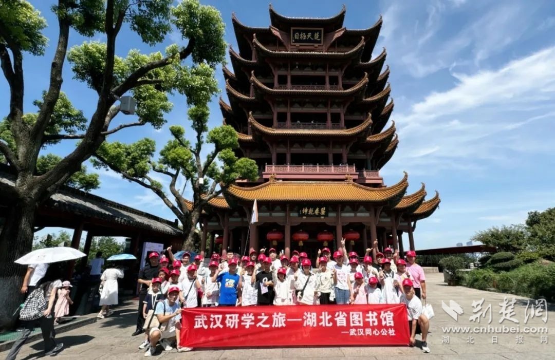 上午9:50分,12名武漢志愿者代表的孩子迎接11名來自大悟縣的同齡小朋友,在同心公社志愿者引導下,23名孩子手牽手一起走上黃鶴樓,兩地孩子開啟一段快樂的“結對游學之旅”。