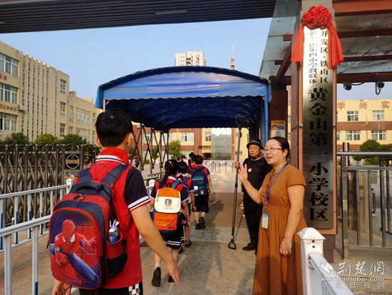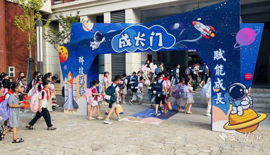 在黃金山第四小學(xué)教聯(lián)體本部校區(qū),孩子們正歡快地路過(guò)成長(zhǎng)門(mén)。他們臉上洋溢著對(duì)未來(lái)的憧憬,小小的身影充滿著希望。