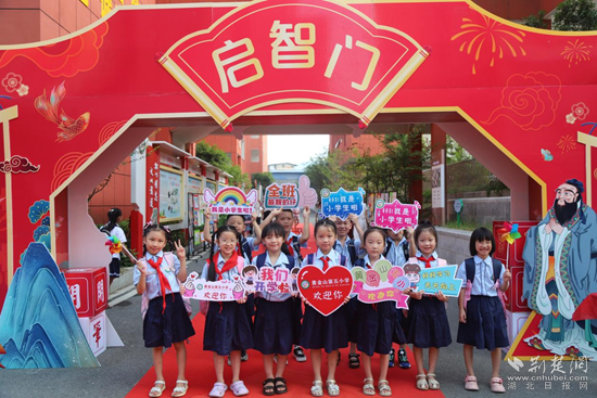 朱砂啟智、摸果蔬、擊鼓明志、過(guò)啟智門(mén)……開(kāi)發(fā)區(qū)·鐵山區(qū)黃金山實(shí)驗(yàn)小學(xué)舉行一年級(jí)新生入學(xué)儀式。120名一年級(jí)小學(xué)生,在滿滿的儀式感中開(kāi)啟六年的小學(xué)生活。