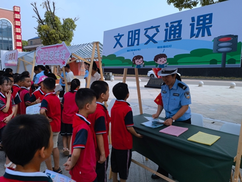 現(xiàn)場,每個攤位前都圍滿了前來“趕集”的紅色身影,熱鬧非凡。防詐反詐攤位上,該鎮(zhèn)派出所民警為學(xué)生們宣講反詐知識,增強學(xué)生們的識騙防騙意識和能力;一旁的平安法治攤位,鎮(zhèn)司法所工作人員結(jié)合典型案例,向同學(xué)們解讀《中華人民共和國未成年人保護(hù)法》相關(guān)法律條款,并圍繞校園暴力的危害性和預(yù)防措施進(jìn)行講解……