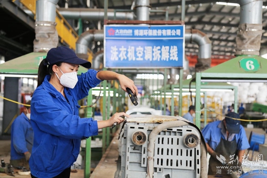 走進(jìn)位于大冶湖高新區(qū)攀宇工業(yè)園博源環(huán)保公司,倉(cāng)庫(kù)內(nèi)廢舊家電堆積如山,拆解線上一片繁忙,一臺(tái)臺(tái)冰箱從流水線上進(jìn)入破碎機(jī)后,經(jīng)過磁選、色選、比選……塑料、玻璃、金屬各落各袋。該公司副總經(jīng)理劉國(guó)平說,年處理廢棄電器產(chǎn)能150萬臺(tái),僅今年“五一”期間,黃石首屆家電“以舊換新”消費(fèi)展就一次性回收舊家電5000臺(tái),交由博源環(huán)保公司拆解處理。