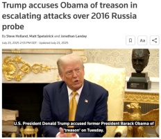此前,美國國家情報總監(jiān)加巴德7月18日宣布解密部分情報文件,顯示奧巴馬時期的情報體系“存在政治化運作”。隨后,特朗普于7月19日和20日連續(xù)在社交媒體發(fā)文,直接點名指控奧巴馬“叛國”,稱“奧巴馬濫用權(quán)力操控情報系統(tǒng),傷害美國民主根基”,要求徹查。奧巴馬陣營則回應(yīng)稱指控“荒謬且毫無事實依據(jù)”,是“赤裸裸的政治操弄”, 強調(diào)“通俄門”調(diào)查結(jié)論已通過跨黨派確認,批評特朗普為選舉利益制造“虛假敘事”。
