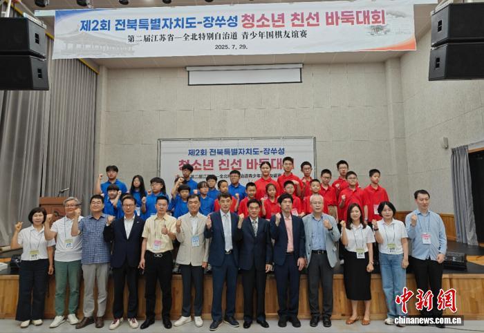 當?shù)貢r間7月29日,第二屆江蘇省—全北特別自治道青少年圍棋友誼賽在韓國全州市舉行。圖為活動合影。中國駐光州總領事館 供圖