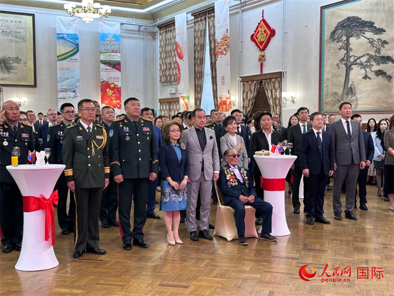 人民網(wǎng)烏蘭巴托7月31日電 (記者張朋輝)7月31日晚,中國駐蒙古國大使館舉辦慶祝中國人民解放軍建軍98周年、紀(jì)念中國人民抗日戰(zhàn)爭暨世界反法西斯戰(zhàn)爭勝利80周年招待會。中國駐蒙古國大使沈敏娟、國防武官張秀良大校,蒙古國國防部國務(wù)秘書岡呼亞格少將、國家大呼拉爾法律常設(shè)委主席朝格特巴特爾等蒙方官員,參加抗日戰(zhàn)爭老兵及家屬,各界友好人士及部分駐蒙使節(jié)等近300人參加了招待會。
