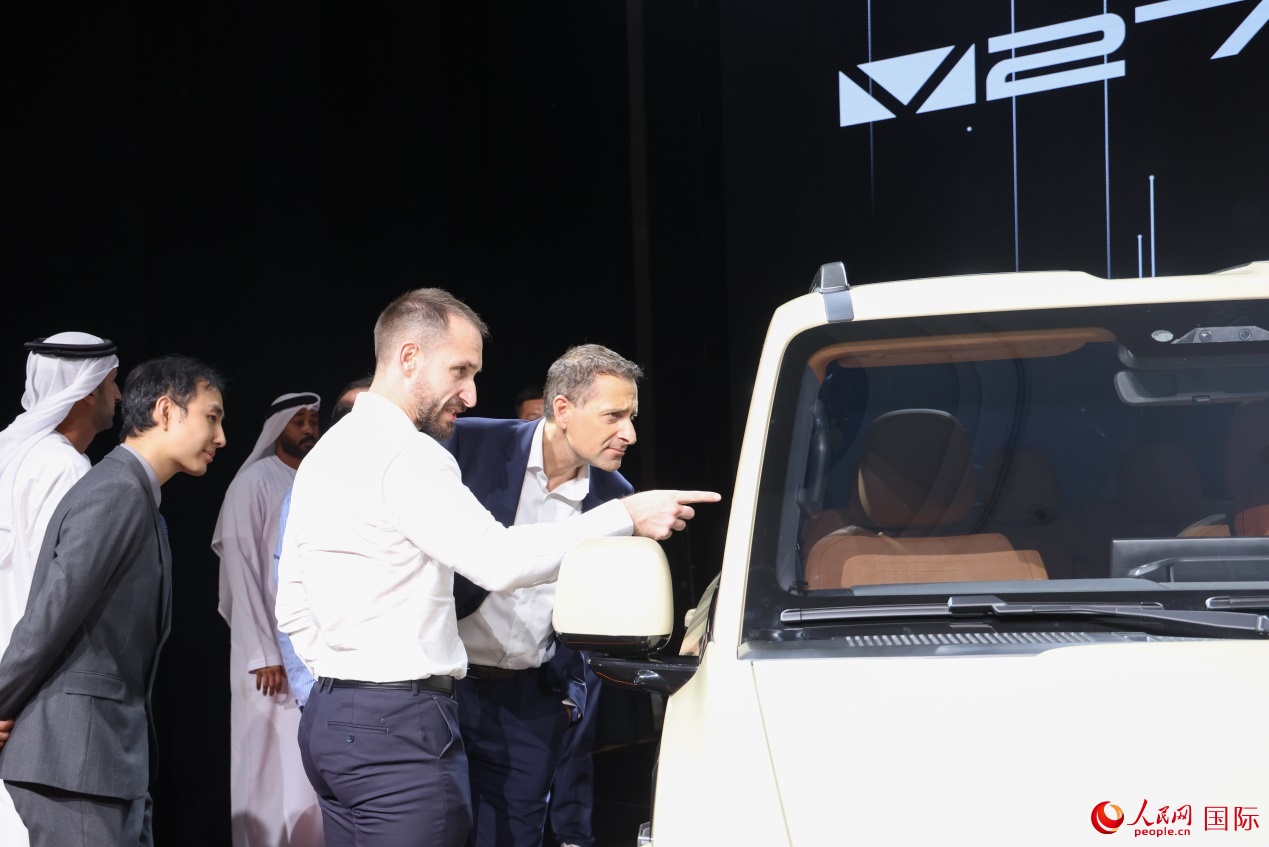 迪拜觀眾在了解中國(guó)品牌汽車。人民網(wǎng)記者 任皓宇攝