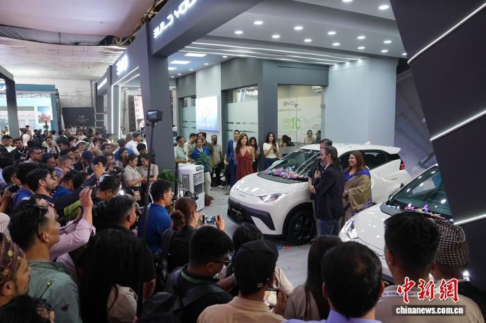 8月6日,尼泊爾全國規(guī)模最大的車展在首都加德滿都開幕,吸引超過10家中國品牌參展。圖為比亞迪Atto 1電動(dòng)汽車尼泊爾首發(fā)儀式吸引眾多參觀者。 中新社記者 崔楠 攝