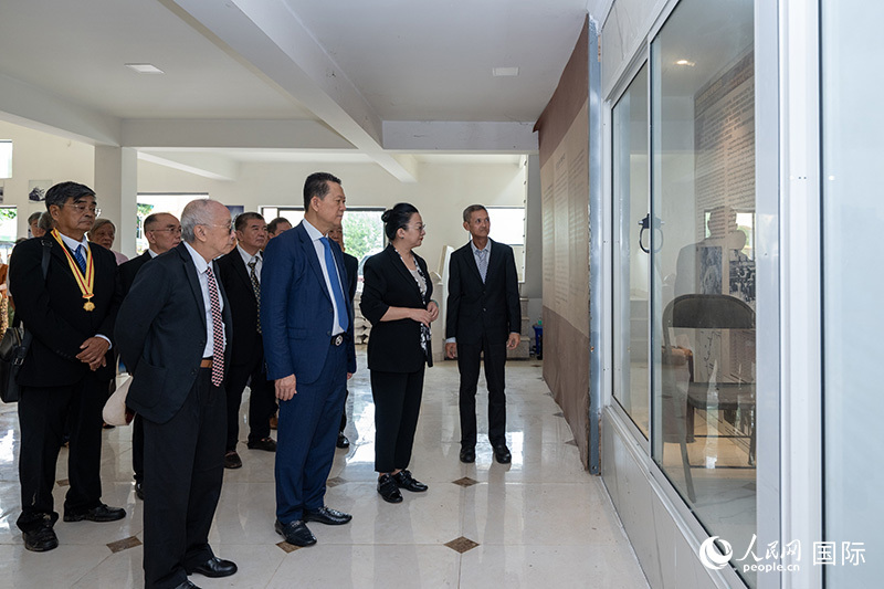 中國(guó)駐緬甸大使馬珈在中國(guó)遠(yuǎn)征軍后裔代表和當(dāng)?shù)貎S領(lǐng)陪同下參觀中國(guó)遠(yuǎn)征軍抗戰(zhàn)陳列展。人民網(wǎng)記者 謝佳君攝