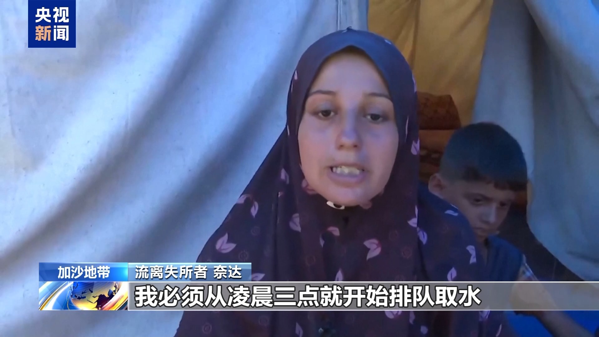 流離失所者 奈達(dá):我必須從凌晨三點(diǎn)就開(kāi)始排隊(duì)取水。我懇求他們看在我孩子的份上,給我一些水吧,哪怕一滴也行。