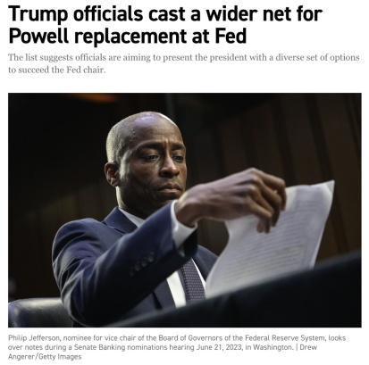 △美國《政治》新聞網(wǎng)站報道,特朗普政府正在拓展接替鮑威爾的人選范圍。
