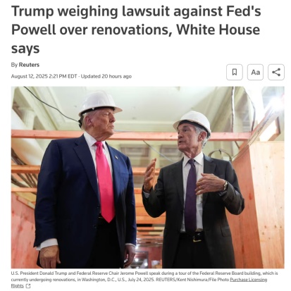 輿論普遍認(rèn)為,特朗普的真正目標(biāo)并非追回聯(lián)儲建設(shè)成本,而是借此放大輿論壓力,尋找迫使鮑威爾提前下臺的理由。
