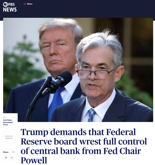 △美國公共廣播公司報道,特朗普批評鮑威爾在降息問題上頑固不化。