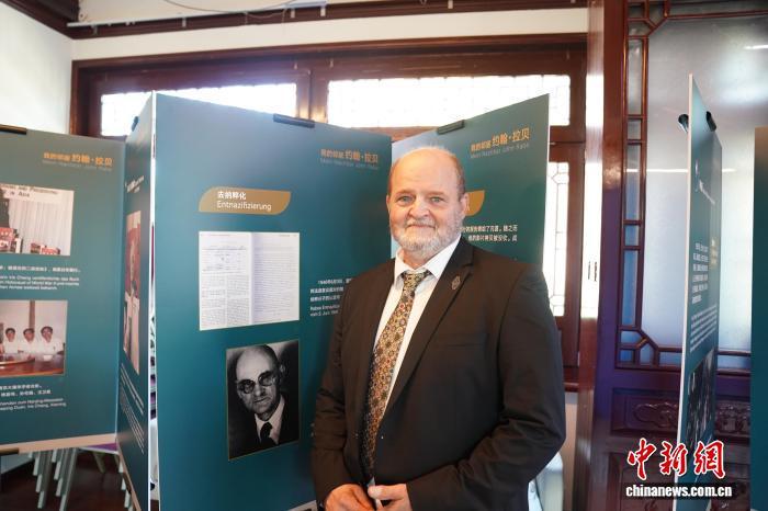 當?shù)貢r間8月15日,中國駐漢堡總領館與南京大學“拉貝日記與和平城市”團隊、德中交流協(xié)會共同在漢堡舉辦《我的鄰居——約翰·拉貝》展覽。圖為約翰·拉貝曾外孫克里斯托夫·賴因哈特在展覽前留影。 中新社記者 馬秀秀 攝