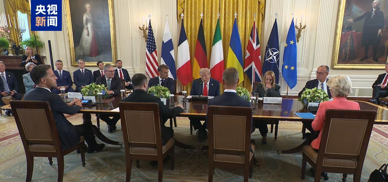 當?shù)貢r間8月18日,美國總統(tǒng)特朗普在白宮與到訪的歐洲領導人舉行多邊會晤。除特朗普與烏克蘭總統(tǒng)澤連斯基外,與會者包括歐盟委員會主席馮德萊恩、法國總統(tǒng)馬克龍、德國總理默茨、英國首相斯塔默、意大利總理梅洛尼、芬蘭總統(tǒng)斯圖布以及北約秘書長呂特。