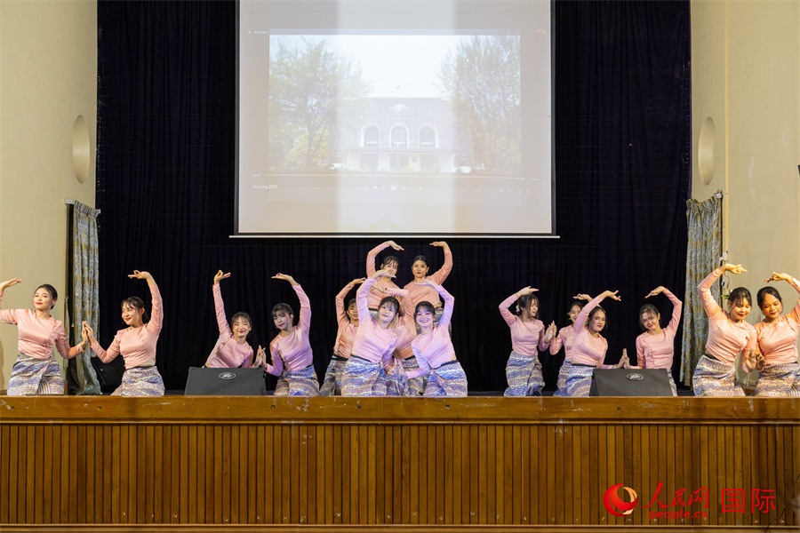 仰光大學(xué)學(xué)生在中緬文化交流會上表演。人民網(wǎng)記者 謝佳君攝