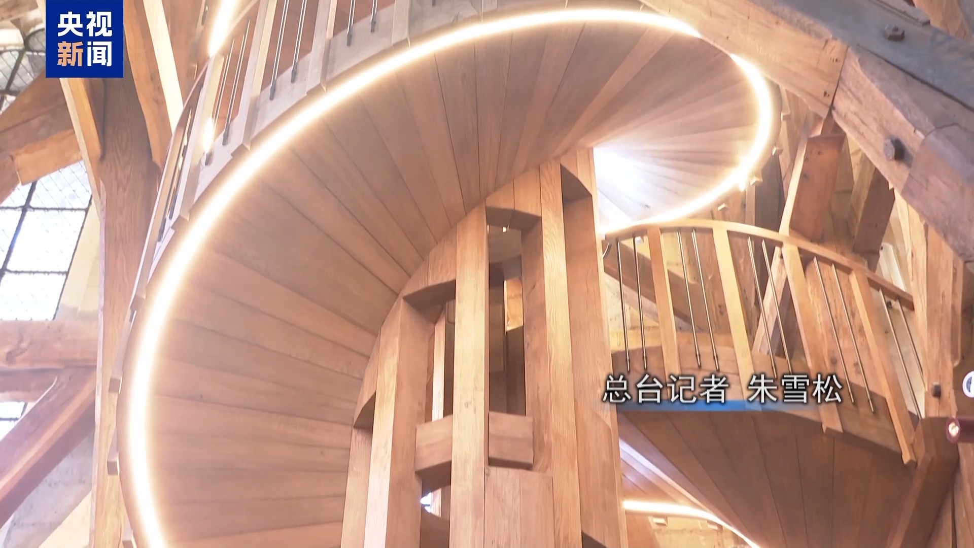 總臺(tái)記者 朱雪松:我們首先來(lái)到攀登塔樓要用到的樓梯旁邊。原來(lái)這里是古舊的石頭樓梯,現(xiàn)在已經(jīng)全部換成全新的木質(zhì)樓梯。值得一提的是,樓梯的設(shè)計(jì)采用雙螺旋的模式,能夠保證上下分流,同時(shí)也能夠保證使用樓梯時(shí)的舒適和安全,這也是整個(gè)修繕工作最大的亮點(diǎn)之一。