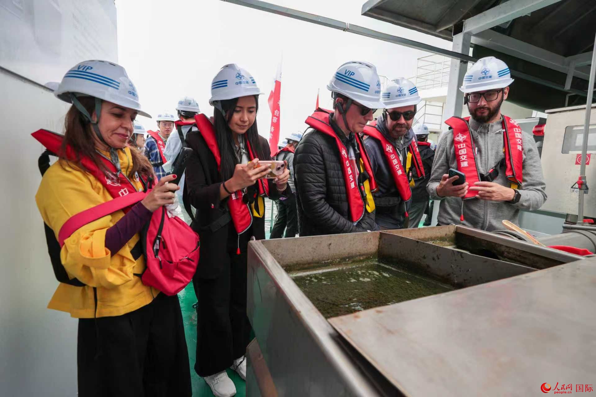 2025“一帶一路”媒體合作論壇中外媒體聯(lián)合采訪團在中交集團為滇池量身定制的“藻水共治”一體化平臺采訪調(diào)研。人民網(wǎng)記者 張武軍攝