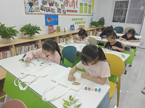孩子們制作環(huán)保拓印手工包。 通訊員供圖
