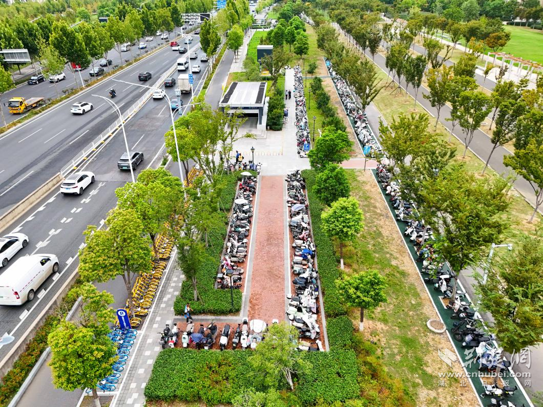 荊楚網(wǎng)(湖北日報網(wǎng))訊(記者 何婧 通訊員 汪玉平 黃慕潔 羅樂)清晨七點(diǎn)半的金山大道,陽光正好灑在二雅路地鐵站C出口。王女士騎著小電動,熟練地把車停進(jìn)新劃的白色線框里?!艾F(xiàn)在可算不用兜圈子找車位了!”她鎖好車,抬眼看了看站口那塊醒目的藍(lán)牌子——“居民電動車停靠點(diǎn)”“共享單車區(qū)”,幾個大字清清楚楚。不過幾分鐘,她已經(jīng)刷卡進(jìn)站,步履輕松。