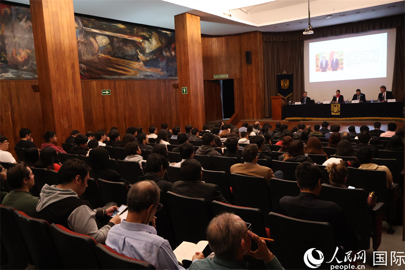 人民網(wǎng)墨西哥城9月24日電 (記者謝佳寧)9月24日,中國駐墨西哥大使陳道江應(yīng)邀為墨國立自治大學(xué)200余名師生作專題講座,介紹全球背景下中墨關(guān)系、中拉關(guān)系。墨國立自治大學(xué)中墨研究中心主任杜塞爾、經(jīng)濟(jì)系主任羅德里格斯陪同。