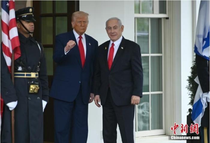 資料圖:當(dāng)?shù)貢r間2025年4月7日,美國總統(tǒng)特朗普與以色列總理內(nèi)塔尼亞胡在華盛頓白宮會晤。中新社記者 陳孟統(tǒng) 攝