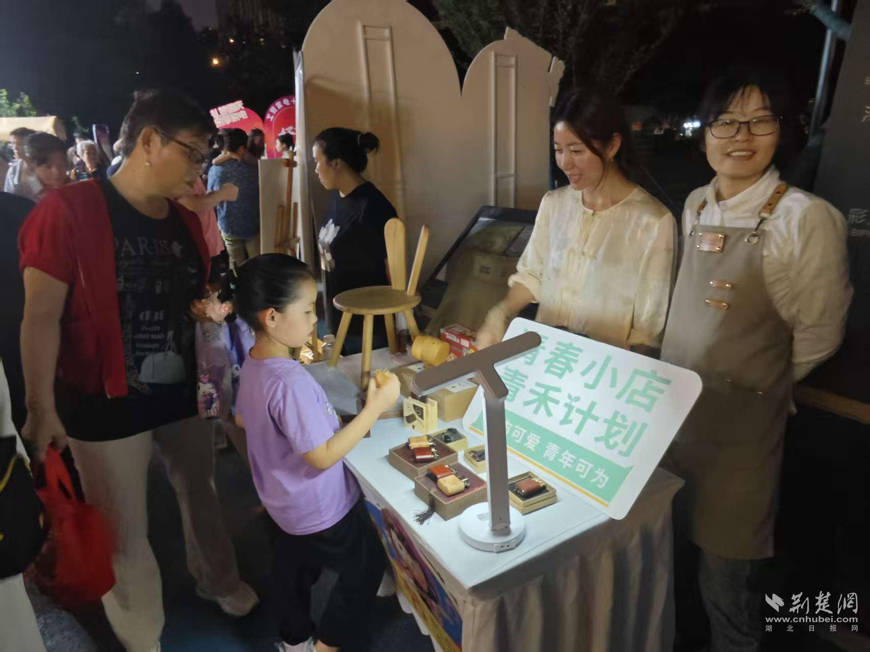 廣場另一側的主題市集同樣熱鬧非凡:景德鎮(zhèn)陶瓷、手工飾品、特色飲品琳瑯滿目,社區(qū)合伙人設置自然研學、木工DIY體驗區(qū)成為親子家庭的熱門打卡點;便民服務攤位貼心實用;“月餅品嘗區(qū)”和“祝福祖國簽名墻”人氣爆棚。居民李阿姨感慨道:“今天能和鄰居一起做手工、看節(jié)目、聊聊天,感覺特別溫暖,社區(qū)就像一家人?!?/p>