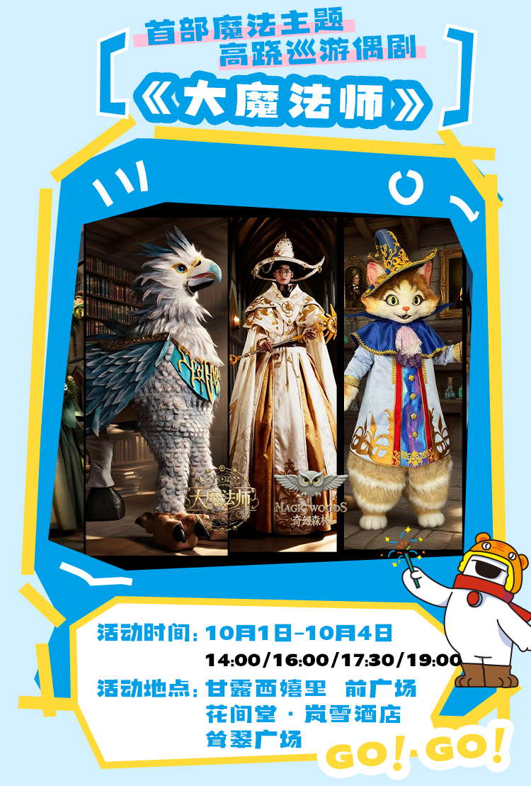 烏鎮(zhèn)戲劇節(jié)演藝團(tuán)隊(duì)將空降甘露山,這支魔術(shù)團(tuán)隊(duì)為游客帶來最新力作——中國首部魔法主題高蹺木偶劇《大魔法師》武漢首演,這也是該劇的全國首演,高2.4米白袍巫師哈瑞、精靈法師瑞秋、黑袍赫侖等IP角色震撼登場,可一睹各類經(jīng)典魔法咒語現(xiàn)場版,感受大魔法的奇幻世界。