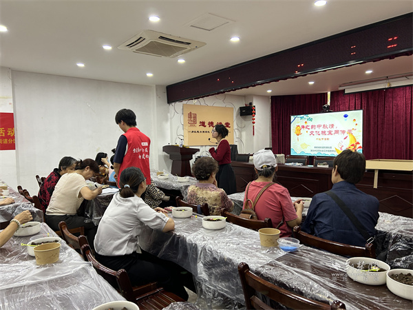 活動(dòng)在文化宣講中拉開帷幕。工作人員圍繞中秋節(jié)的起源與演變,生動(dòng)講述了“嫦娥奔月”“吳剛伐桂”等經(jīng)典傳說(shuō),并系統(tǒng)梳理了中秋從先秦祭月禮儀逐漸發(fā)展為團(tuán)圓佳節(jié)的歷史脈絡(luò),引導(dǎo)居民深入感受傳統(tǒng)節(jié)日背后的文化厚度。