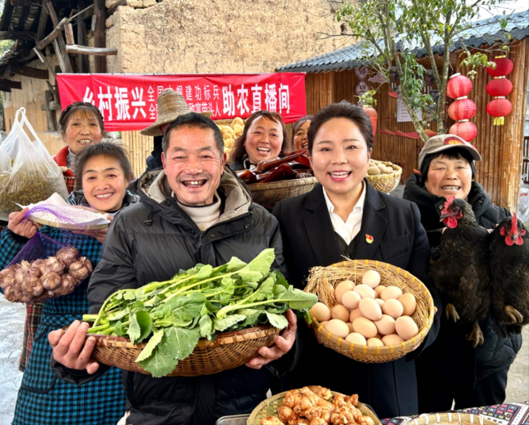 △全國巾幗建功標(biāo)兵、建始縣村播婦聯(lián)主席秦娥帶領(lǐng)村播及周邊農(nóng)戶開展鄉(xiāng)村助農(nóng)直播
