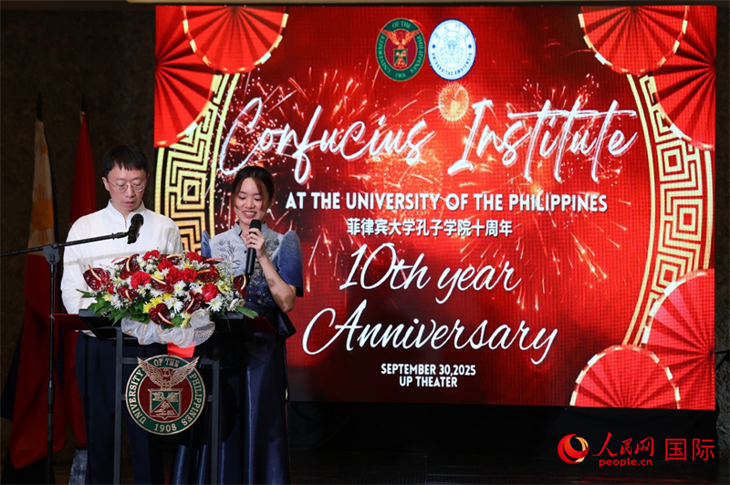 菲律賓大學(xué)孔子學(xué)院在菲大迪利曼校區(qū)大學(xué)劇院成功舉辦十周年慶典活動。人民網(wǎng)記者 樊帆攝