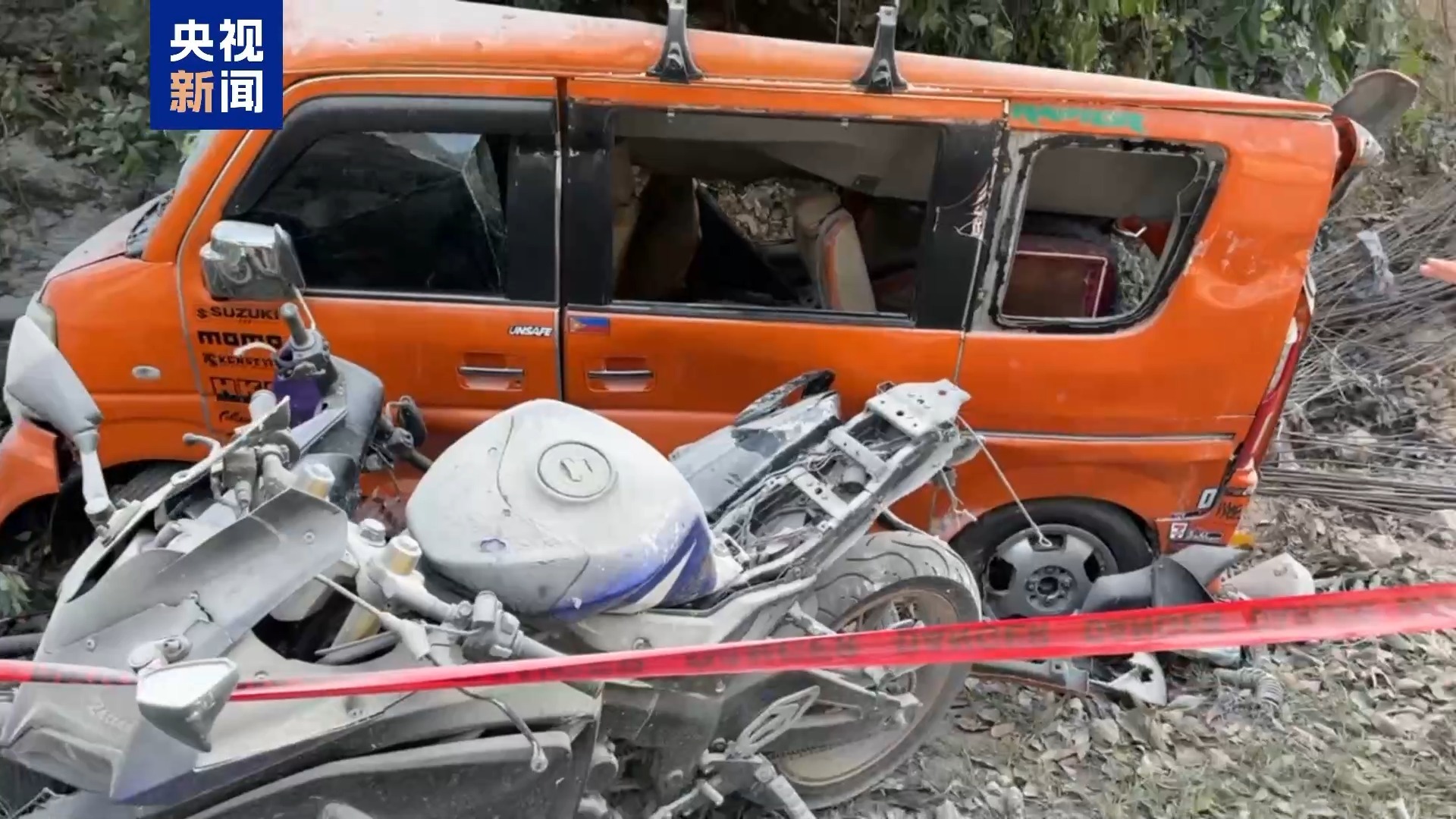 總臺記者 黃錚錚:山體滑坡還對當地居民生活造成了很大影響,載客小型車輛及幾輛摩托車在山體滑坡事故中受損。(總臺記者 黃錚錚)