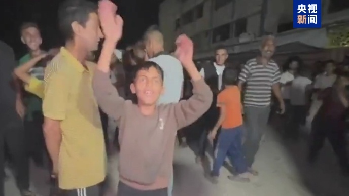 △哈馬斯提交對(duì)“20點(diǎn)計(jì)劃”的回應(yīng)后,加沙民眾走上街頭進(jìn)行慶祝