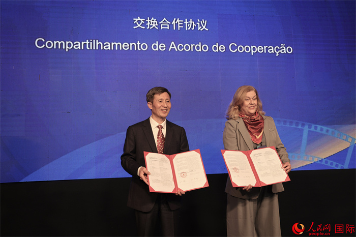 中央廣播電視總臺與巴西盒子媒體集團(tuán)在第五屆巴西“中國影視作品展播季”活動中交換影視節(jié)目播出合作協(xié)議。人民網(wǎng)記者 時(shí)元皓攝