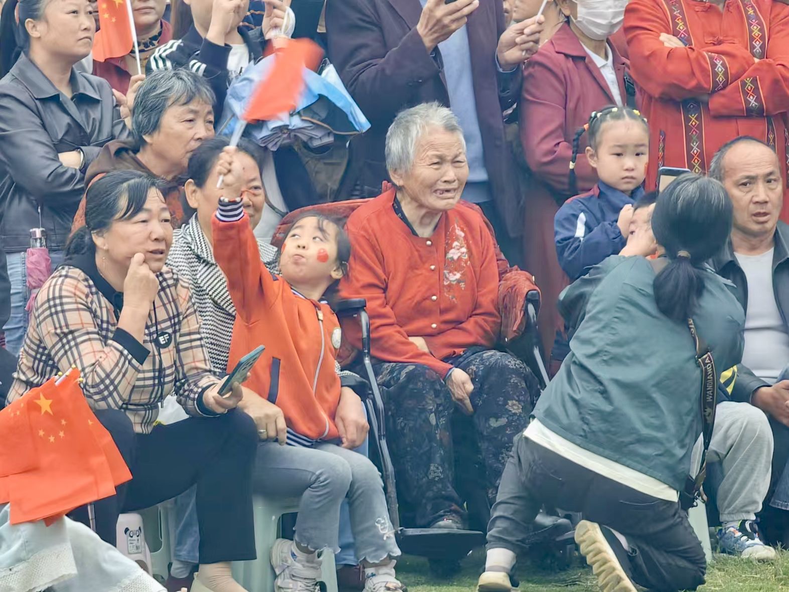 當(dāng)《好日子》的旋律響起,劉鳳英老人緊緊盯著舞臺(tái),渾濁的眼睛漸漸發(fā)亮,嘴角揚(yáng)起久違的笑容,淚水突然滑落:“這是她癱瘓后第一次為演出流淚,像是把十年的悶都哭出來了?!倍涡闳葺p拭母親的眼淚,自己也紅了眼眶。周圍觀眾紛紛讓路,有人搬來凳子,有人遞上溫水,現(xiàn)場(chǎng)暖意涌動(dòng)。