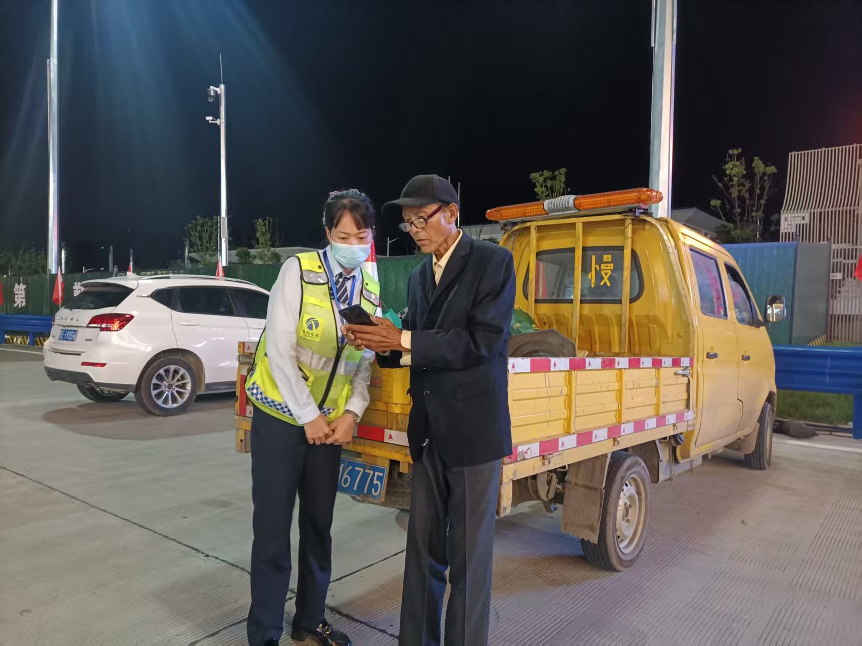 當(dāng)天凌晨2時(shí)許,一位老人茫然地站在孝感收費(fèi)站廣場(chǎng)上,神情低落,顯得不知所措。正在外場(chǎng)巡邏的收費(fèi)班長(zhǎng)王燕玲發(fā)現(xiàn)了這一情況,便主動(dòng)上前詢問(wèn)。