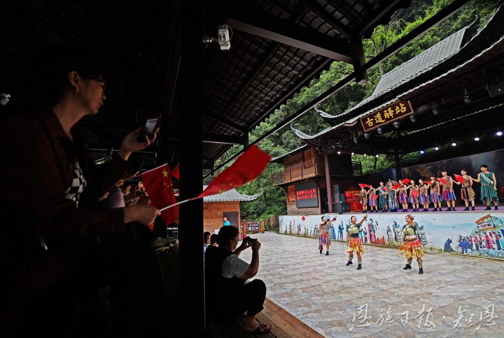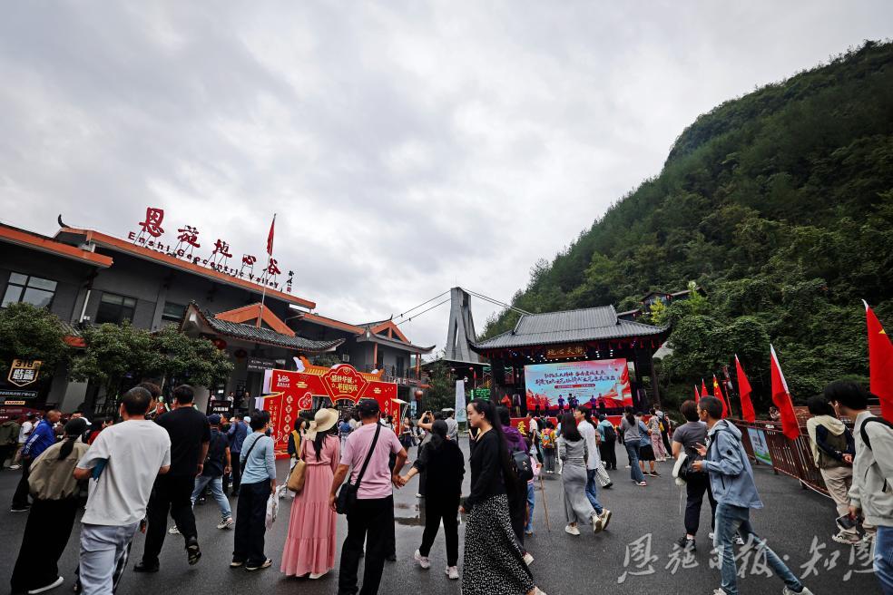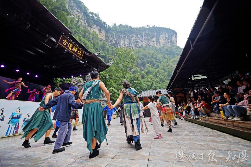 此外,“非遺鬧峽谷”,雙節(jié)間景區(qū)各處其豐富多彩的非遺文化活動為這趟自然之旅增添不少韻味。湖北省民族歌舞團(tuán)的駐場演出、《地心之戀》實景劇、《鹽道古風(fēng)》原生生態(tài)表演等,讓游客在領(lǐng)略自然奇觀的同時,也能深度體驗深厚的土家苗族文化與千年巴鹽古道歷史。山水與人文在此完美交融,締造出獨一無二的旅行記憶。