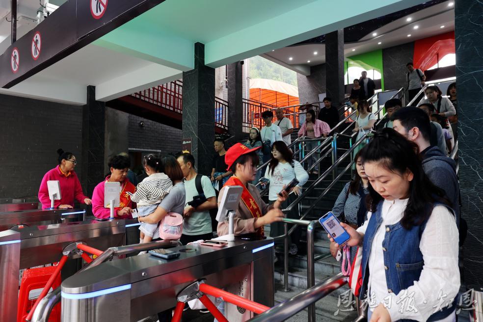 在效率提升方面,景區(qū)科學(xué)分流多措并舉讓等待時間“短”下來。通過增派專業(yè)引導(dǎo)員動態(tài)指揮,停車場車輛周轉(zhuǎn)效率大幅提升;線上實名分時預(yù)約購票暢通無阻,現(xiàn)場指引清晰;換乘點車輛調(diào)度科學(xué)、發(fā)車頻次加密,實現(xiàn)了游客換乘的無縫銜接。