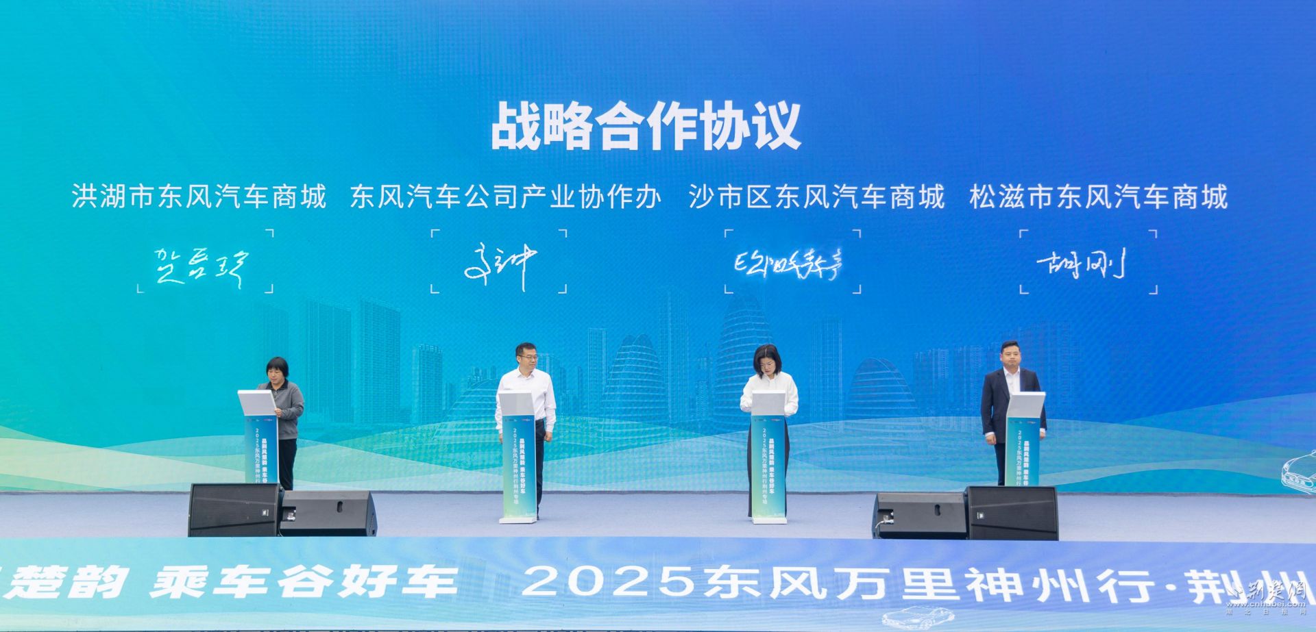 活動現(xiàn)場,神龍汽車與荊州市當?shù)?家駕校簽訂100臺駕考駕培車購車協(xié)議,東風汽車公司產(chǎn)業(yè)協(xié)作辦公室與荊州市機關事務服務中心簽訂戰(zhàn)略合作協(xié)議,東風汽車公司產(chǎn)業(yè)協(xié)作辦公室與荊州市沙市區(qū)、洪湖市、松滋市三家東風汽車商城簽訂戰(zhàn)略合作協(xié)議。