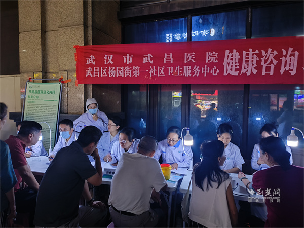 當日,隨著夜色降臨,義診桌前臺燈逐一亮起。來自武昌醫(yī)院消化內(nèi)科、呼吸內(nèi)科等科室的專家醫(yī)師現(xiàn)場坐診,就常見的慢性病管理、飲食養(yǎng)生及用藥安全等問題,為居民進行耐心解答,并對不同病癥的居民給出個性化的健康指導。社區(qū)衛(wèi)生服務中心婦??频尼t(yī)生也忙碌其中,為女性居民提供婦科健康咨詢與知識科普。