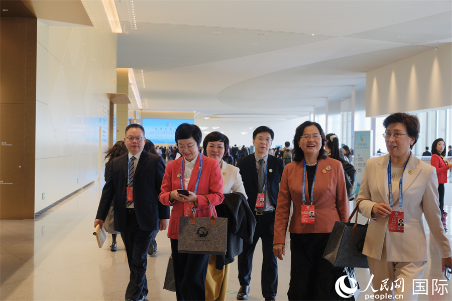 | 全球婦女峰會(huì)嘉賓步入會(huì)場。人民網(wǎng)記者 宋美琪攝 |