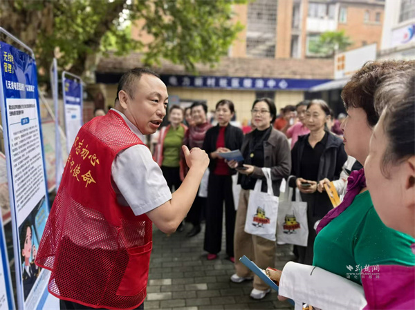 在社區(qū)幸福廣場,一排排科普展板前圍滿居民。展板從無線電基本原理講起,通過“以案釋法”的形式揭露“黑廣播”“偽基站”的詐騙手法,詳細說明危害與識別技巧,引導居民合法使用頻譜資源。