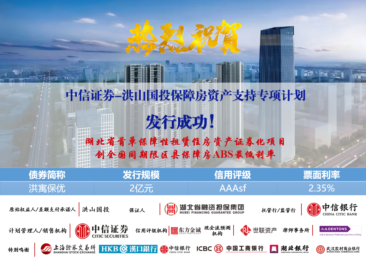 洪山國(guó)投保障房ABS的成功發(fā)行,既是公司叩開(kāi)資本市場(chǎng)大門(mén)的“亮眼首秀”,更是洪山區(qū)屬國(guó)企在資產(chǎn)證券化領(lǐng)域突破前行的生動(dòng)注腳。它不僅幫助企業(yè)優(yōu)化了資產(chǎn)負(fù)債結(jié)構(gòu)、逐步構(gòu)建起存量資產(chǎn)市場(chǎng)化運(yùn)營(yíng)能力,為企業(yè)經(jīng)營(yíng)注入強(qiáng)勁活力,更為地方國(guó)企探索資產(chǎn)盤(pán)活路徑提供了可復(fù)制、可推廣的實(shí)踐樣本,為產(chǎn)業(yè)能級(jí)提升、經(jīng)濟(jì)高質(zhì)量發(fā)展注入源源不斷的動(dòng)力,讓“國(guó)有資產(chǎn)證券化”的思路落地生根。