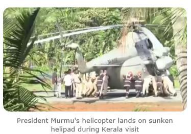 中新網(wǎng)10月22日電 據(jù)《印度時(shí)報(bào)》報(bào)道,印度總統(tǒng)穆?tīng)柲掠诋?dāng)?shù)貢r(shí)間21日開(kāi)啟對(duì)印度南部喀拉拉邦為期四天的正式訪問(wèn)。22日,其乘坐的直升機(jī)在降落至當(dāng)?shù)匾惑w育場(chǎng)的直升機(jī)坪時(shí)發(fā)生意外,部分地面在機(jī)輪觸地后突然下陷。