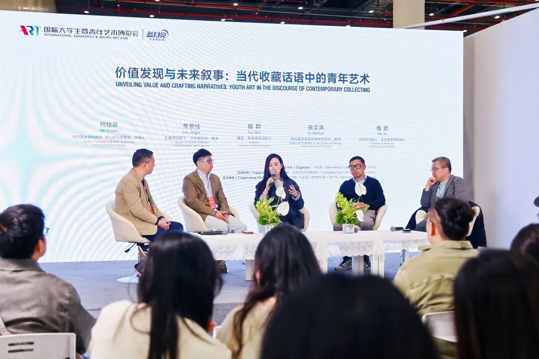 備受矚目的重頭戲是由四川美術(shù)學(xué)院教授、博士研究生導(dǎo)師、策展人何桂彥擔(dān)綱策劃的兩場“學(xué)術(shù)論壇”,分別于開幕日上午與下午在大藝博論壇區(qū)開講,官方直播間同步開播。首場論壇「情感認(rèn)知與視覺重構(gòu):新媒介影響下的青年藝術(shù)實(shí)踐」,聚焦于新媒介技術(shù)時(shí)代催生的全新的美學(xué)范式如何影響青年藝術(shù)家的創(chuàng)作。特邀廣州美術(shù)學(xué)院藝術(shù)與人文學(xué)院院長、教授、策展人胡斌,大藝博往屆參展藝術(shù)家冷廣敏、饒維懿,2025大藝博FREE計(jì)劃藝術(shù)家個(gè)展參展藝術(shù)家孫躍峰作為嘉賓,由大藝博學(xué)術(shù)部總監(jiān)、策展人周敏主持。第二場論壇「價(jià)值發(fā)現(xiàn)與未來敘事:當(dāng)代收藏話語中的青年藝術(shù)」從“語言-機(jī)制-系統(tǒng)-未來”四個(gè)維度,探討青年藝術(shù)的價(jià)值發(fā)現(xiàn)與藝術(shù)生態(tài)的營建。特邀收藏家、東通菜園園丁、藝術(shù)愛好者焦景佳,收藏家、剩余空間創(chuàng)始人眭群,湖北美術(shù)學(xué)院繪畫學(xué)院院長、教授徐文濤,Hi藝術(shù)出品人、玉蘭堂畫廊創(chuàng)始人伍勁作為論壇嘉賓,由何桂彥擔(dān)任主持。