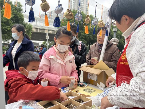體驗區(qū)里,社工帶領(lǐng)孩子們動手制作茱萸香囊,講述“佩茱萸祈福避災(zāi)”的古老風(fēng)俗。孩子們捧著親手做好的香囊,迫不及待地想送給家里的長輩。公益集市的人氣更是高漲,非遺絨花攤位展示傳統(tǒng)之美,慈善義賣匯聚鄰里愛心,植物醫(yī)生攤位傳遞健康養(yǎng)生理念。