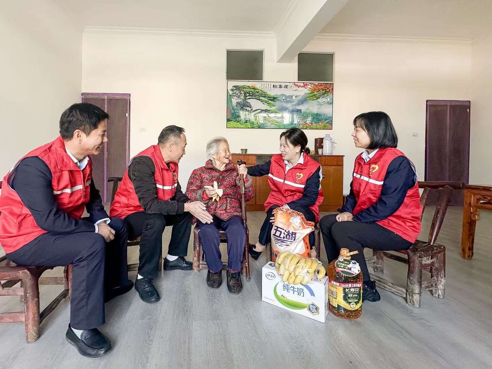 隨后,志愿者們?yōu)槔先藗兯蜕厦住⒂?、重陽糕等慰問品,圍坐在老人身邊親切交談,詳細詢問他們的飲食起居和身體狀況,耐心傾聽老人們講述過往故事,并送上誠摯的節(jié)日祝福。