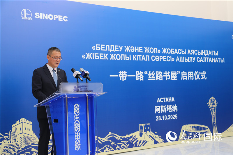 人民網阿斯塔納10月28日電 (記者李強)10月28日,由中國石油化工集團與哈薩克斯坦歐亞大學共同主辦的“絲路書屋”啟用儀式于哈薩克斯坦歐亞大學舉行。中國駐哈薩克斯坦使館公使銜參贊蘇予、歐亞大學校長埃爾蘭·西德科夫、中石化駐哈機構總代表曾凡禮出席儀式并致辭。