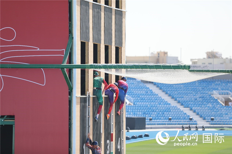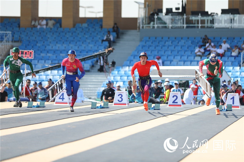 選手們正在進行攀登掛鉤梯比賽。人民網記者 任皓宇攝