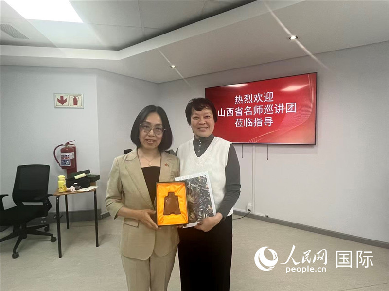 山西省名師巡講團(tuán)與西開普大學(xué)中醫(yī)孔子學(xué)院互贈紀(jì)念品。人民網(wǎng) 董嘉怡攝