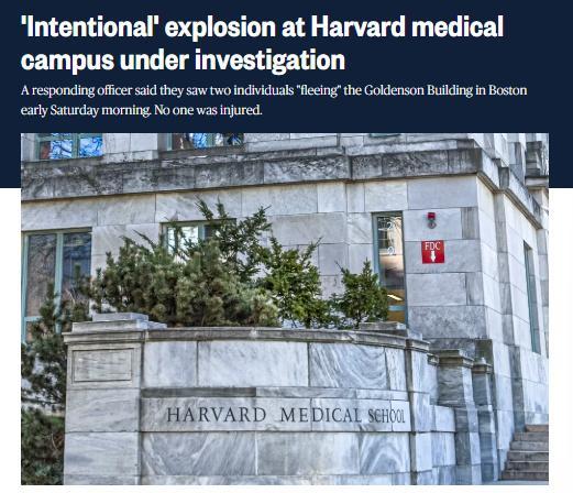 中新網(wǎng)11月2日電 據(jù)美國(guó)廣播公司(ABC)、美國(guó)全國(guó)廣播公司(NBC)報(bào)道,當(dāng)?shù)貢r(shí)間11月1日凌晨,美國(guó)哈佛醫(yī)學(xué)院一棟建筑發(fā)生爆炸。目前暫無(wú)人員傷亡報(bào)告。